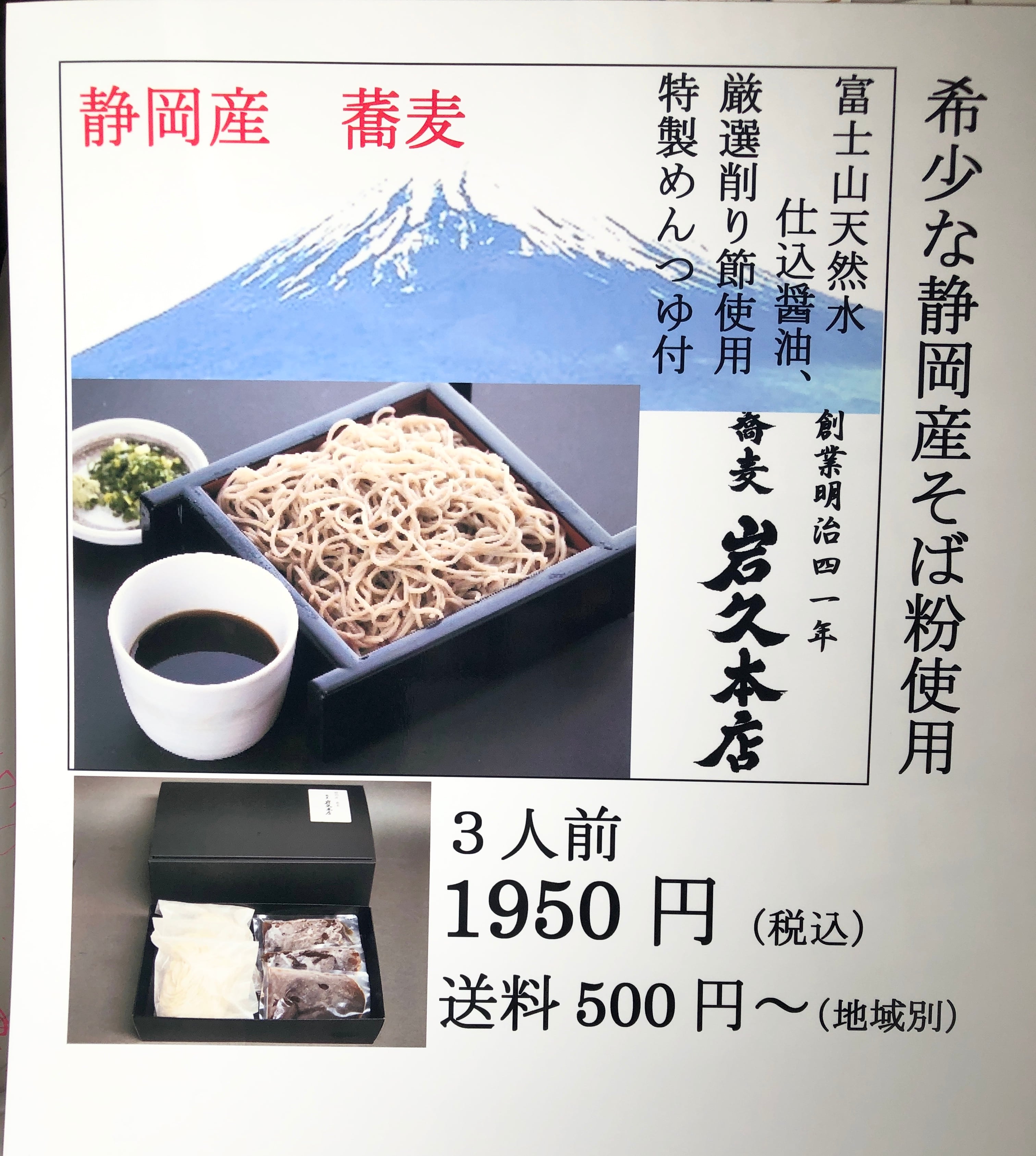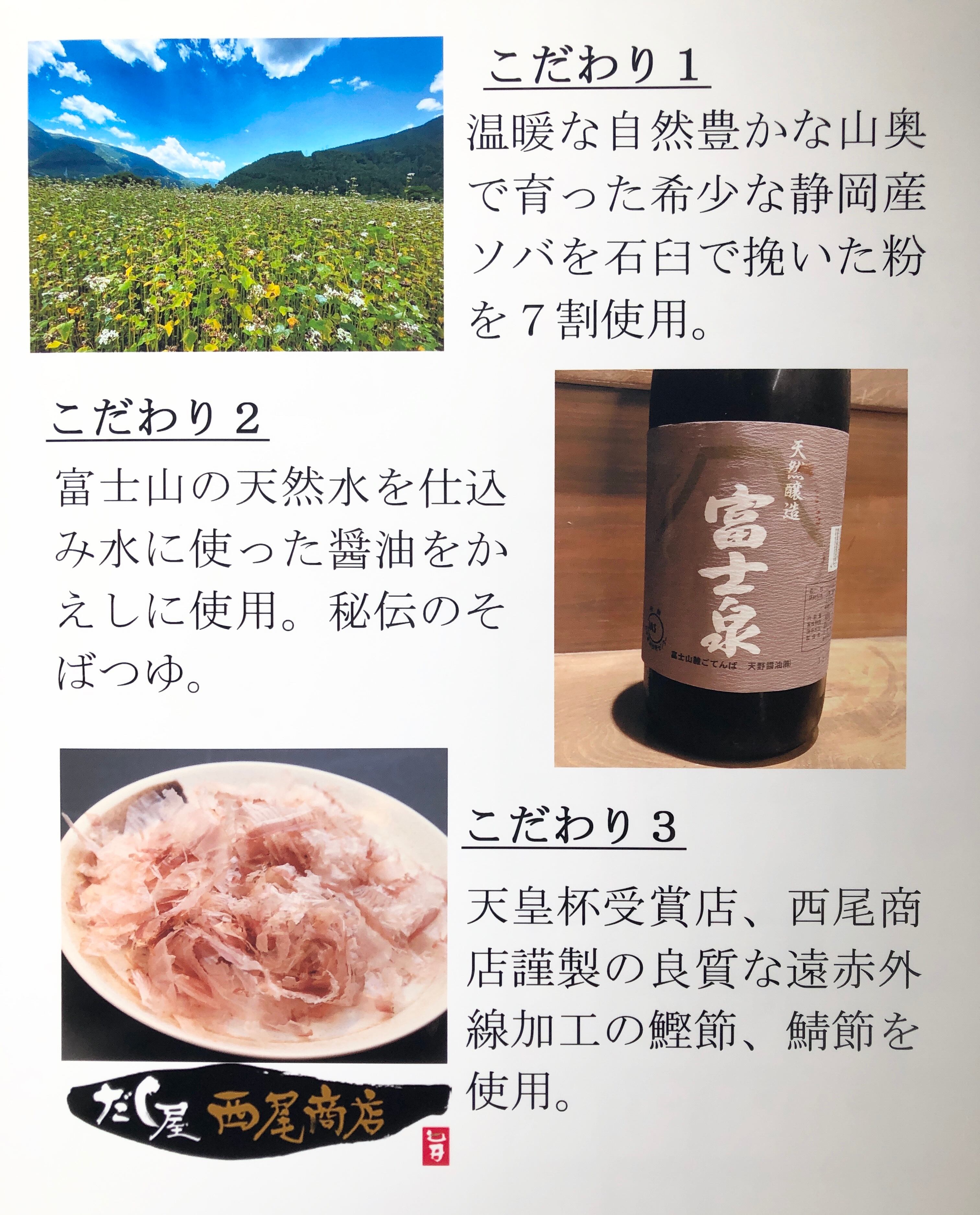 正真正銘の静岡産蕎麦をお楽しみください。